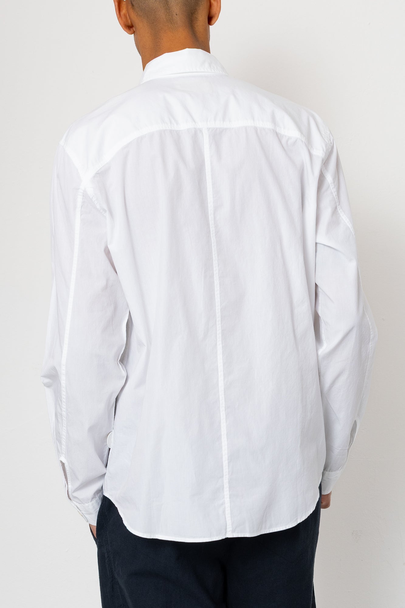 Relaxed fitting long sleeve shirt in a lightweight cotton poplin fabric with crisp handfeel.