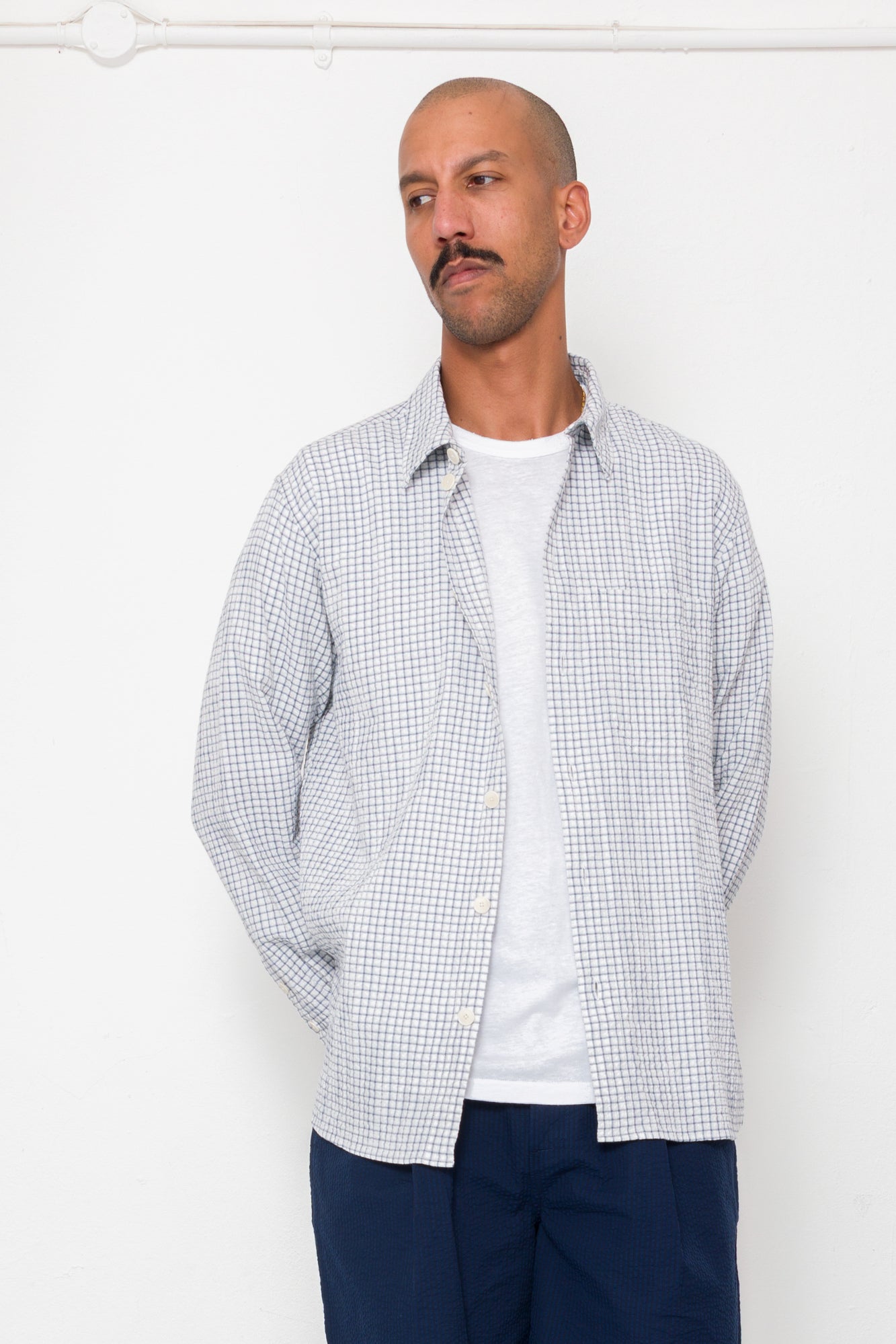 Easy Fit Shirt - Soft Blue Mini Check