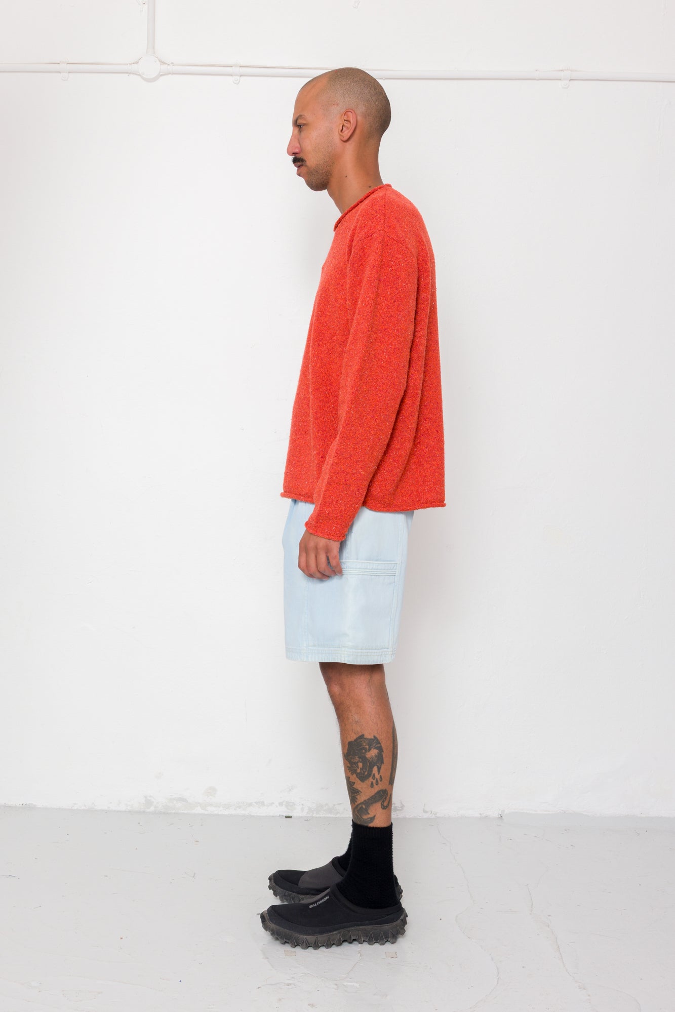- Rolled piping details on side patch pockets.