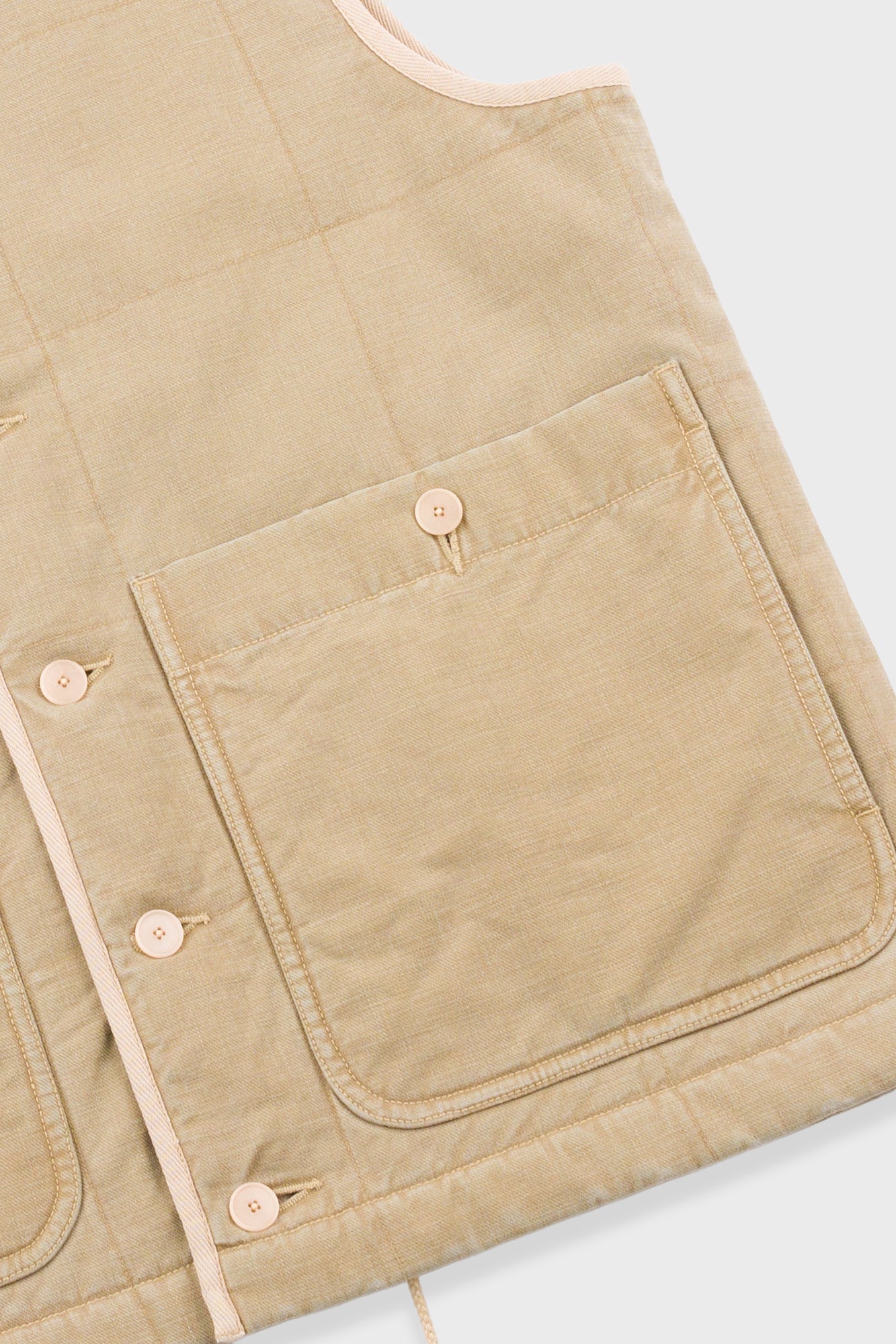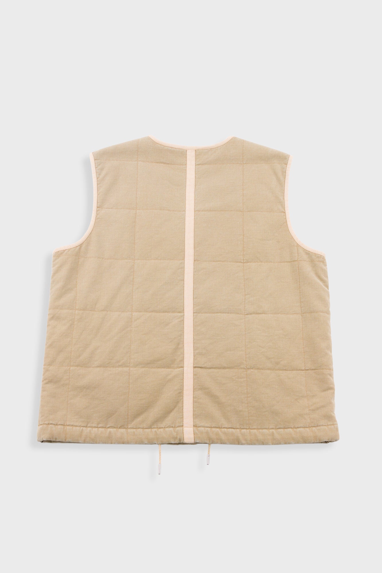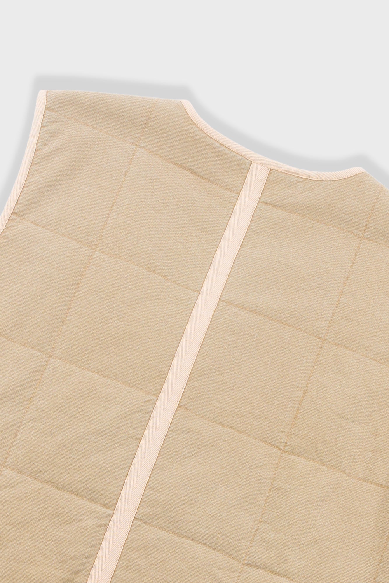 A casual style quilted gilet with a slightly oversized an boxy fit; the perfect layering piece. It has been crafted in a textured cotton slub fabric with flannel lining.