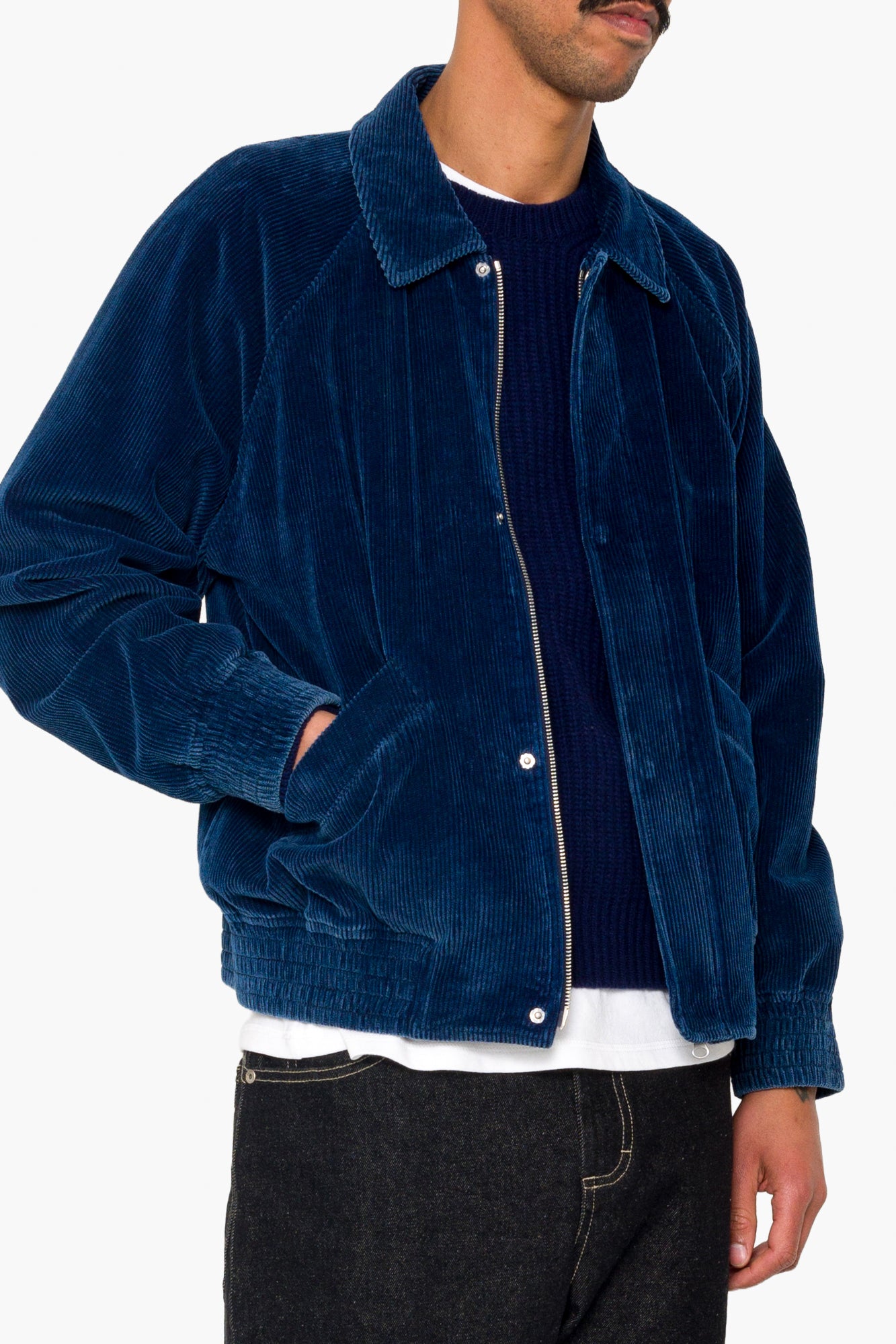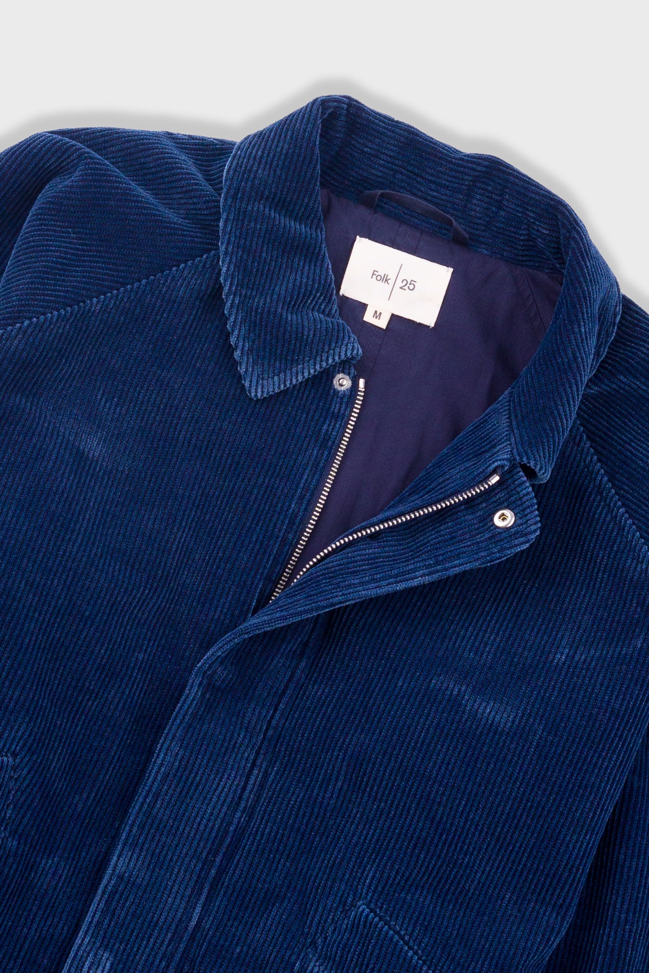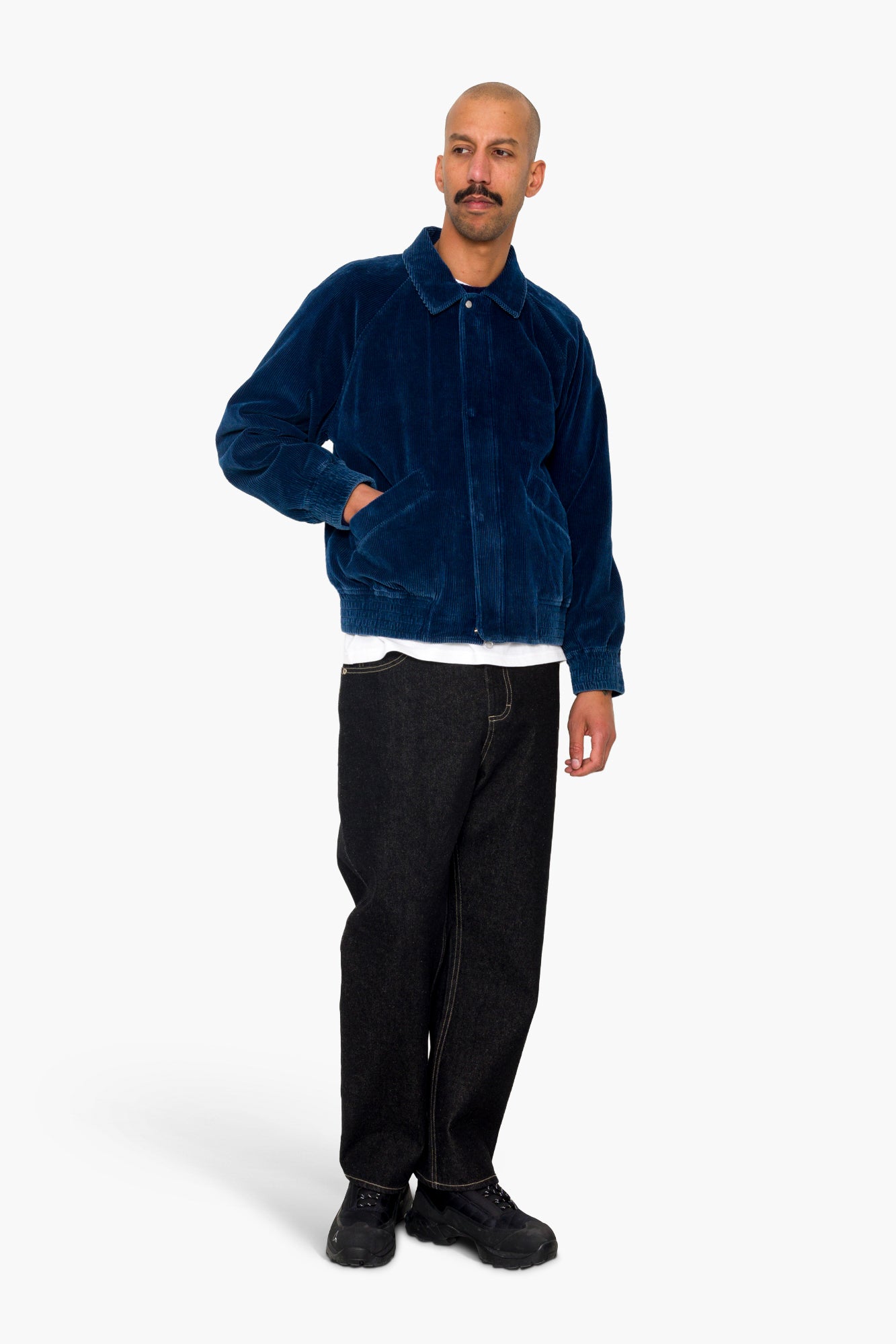 A new casual jacket with raglan sleeves and collar. It has been designed in a rich indigo cotton cord, made from recycled fibres, which has been garment washed for a lived-in look.