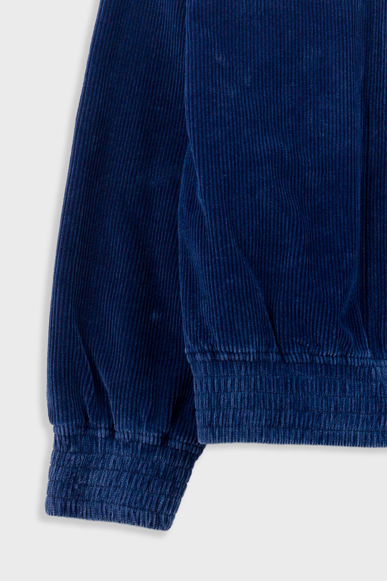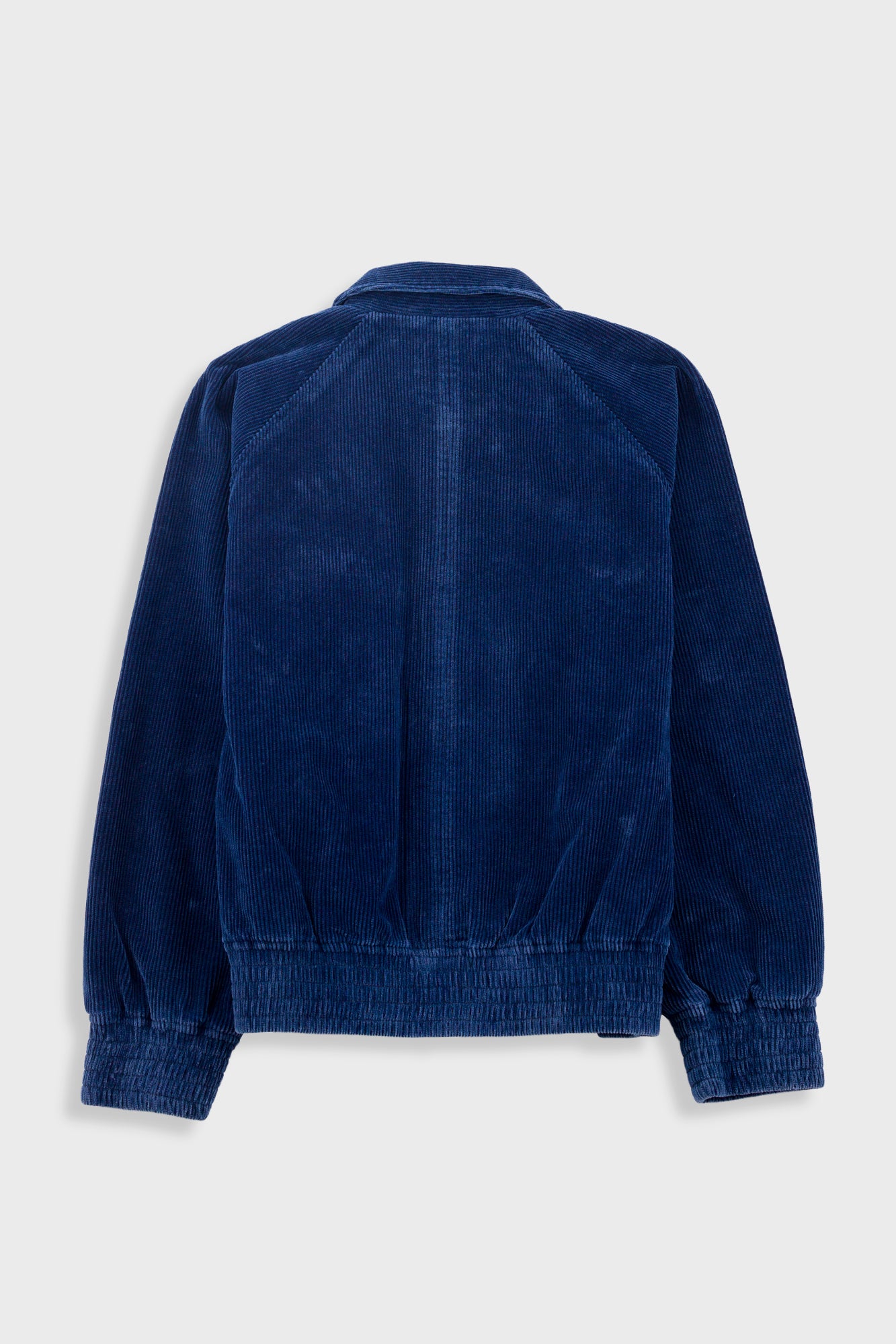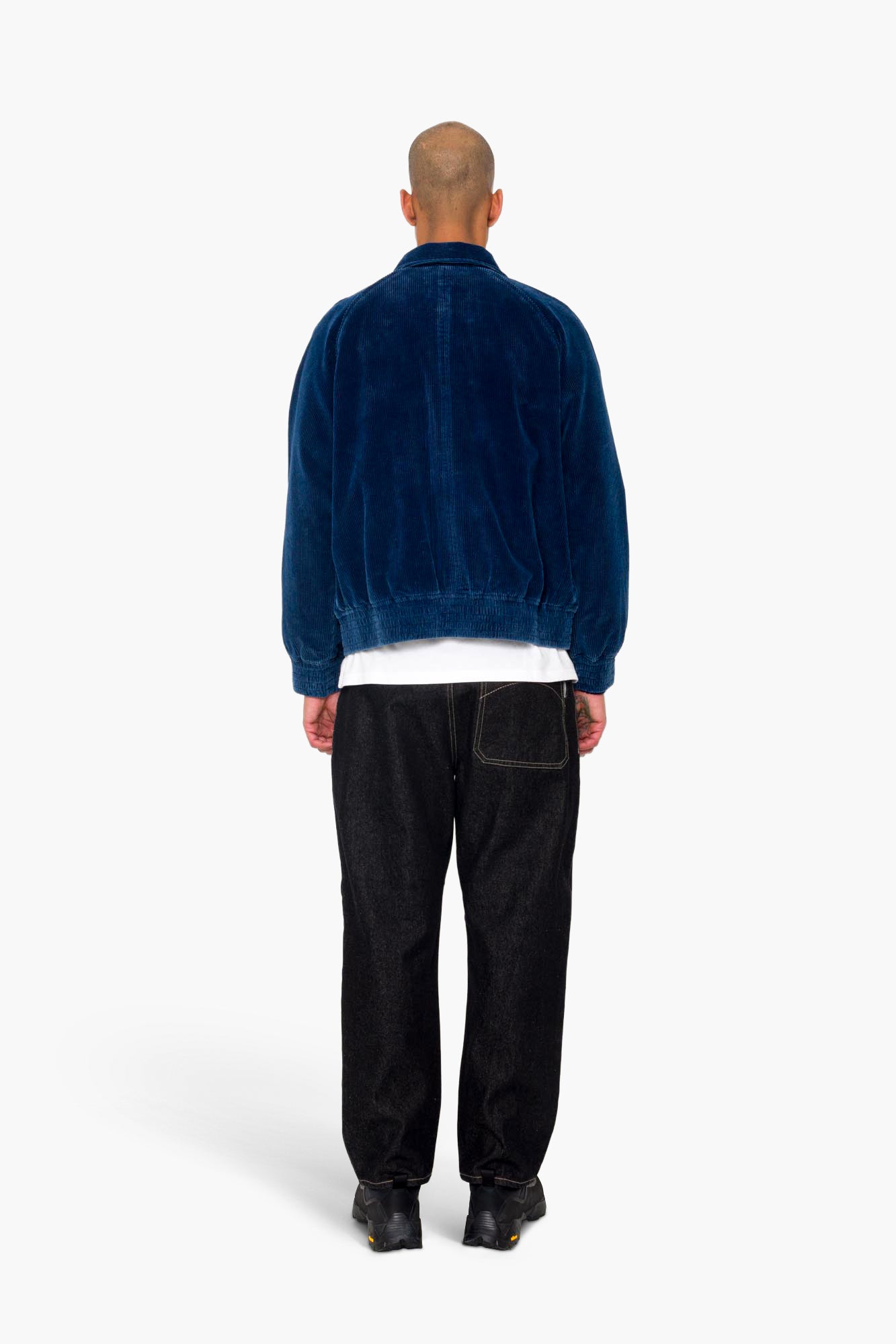 A new casual jacket with raglan sleeves and collar. It has been designed in a rich indigo cotton cord, made from recycled fibres, which has been garment washed for a lived-in look.